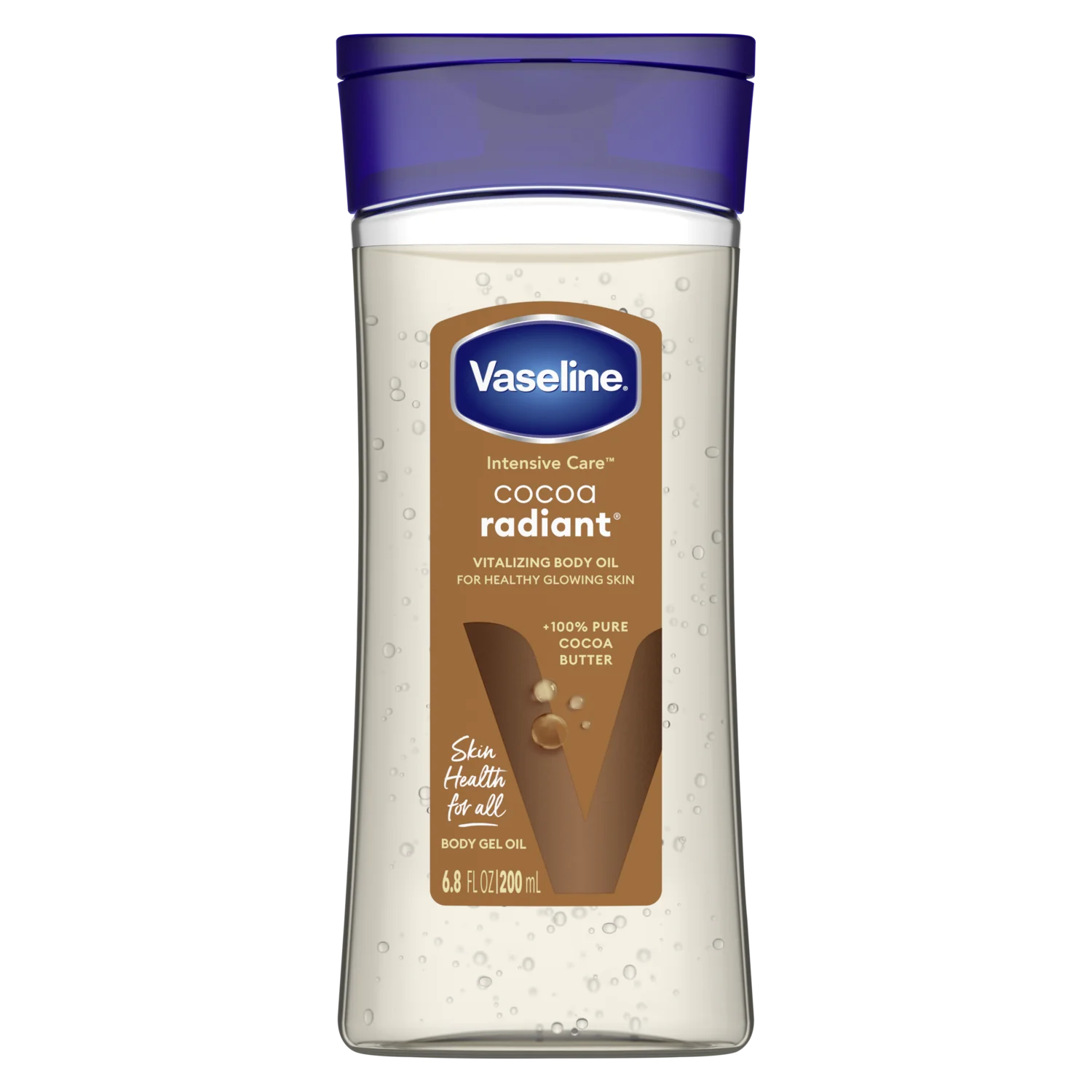 La formule non grasse mais riche de Vaseline® Cocoa Radiant Gel Oil combine du beurre de cacao pur et une huile reconstituante qui donne à la peau un éclat naturel et sain.